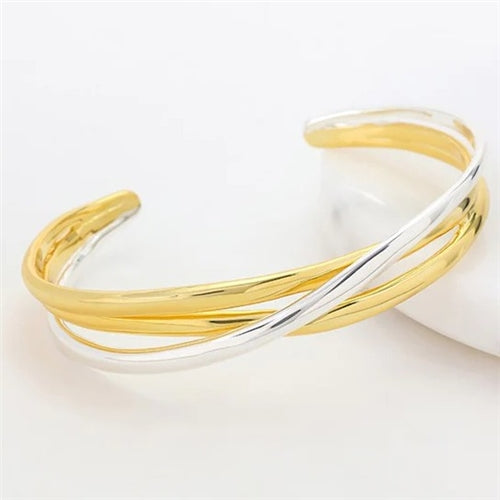 Modern, versatile, and effortlessly chic, the Cara Bracelet combines polished gold and silver tones in a sleek crossover design. Its open cuff style makes it easy to wear while adding a touch of understated elegance to any outfit. Perfect for those who love to mix metals, this bracelet transitions seamlessly from day to night and pairs beautifully with both gold and silver jewellery stacks.