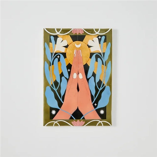 Find solace and serenity with our Prayer Wall Art. Crafted from capiz shell, this wall tile depicts hands in prayer pose, surrounded by ethereal leaf motifs that evoke a sense of tranquility and reverence. Hang it in your yoga space as a focal point for meditation and reflection, or pair it with other tiles from our collection to create a sacred and nurturing environment that supports your spiritual journey.