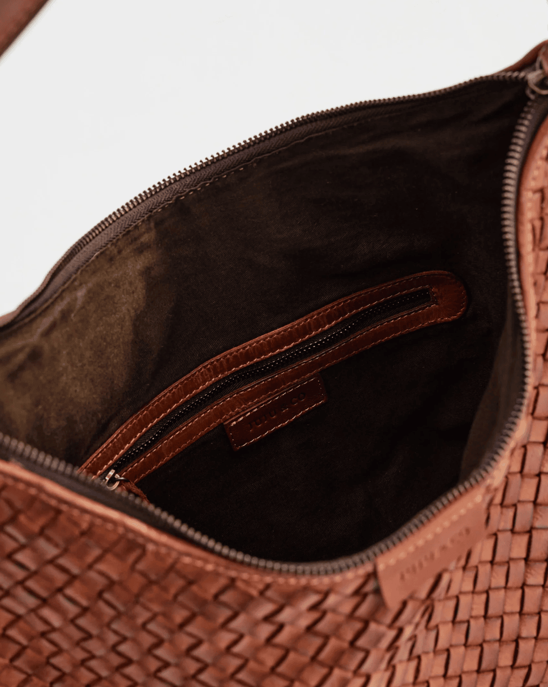 - Woven leather outer, 100% cotton lined