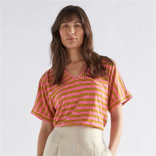 The Seter Tee is a relaxed V-neck t shirt. An ELK classic, the Seter Tee is crafted from lightweight, organic cotton. The tee is defined by its boxy cut, comfortable V-neckline, and perfectly cut batwing sleeves that finish just above the elbow. The Seter Tee is a core outfit builder that you will come back to over and over again.