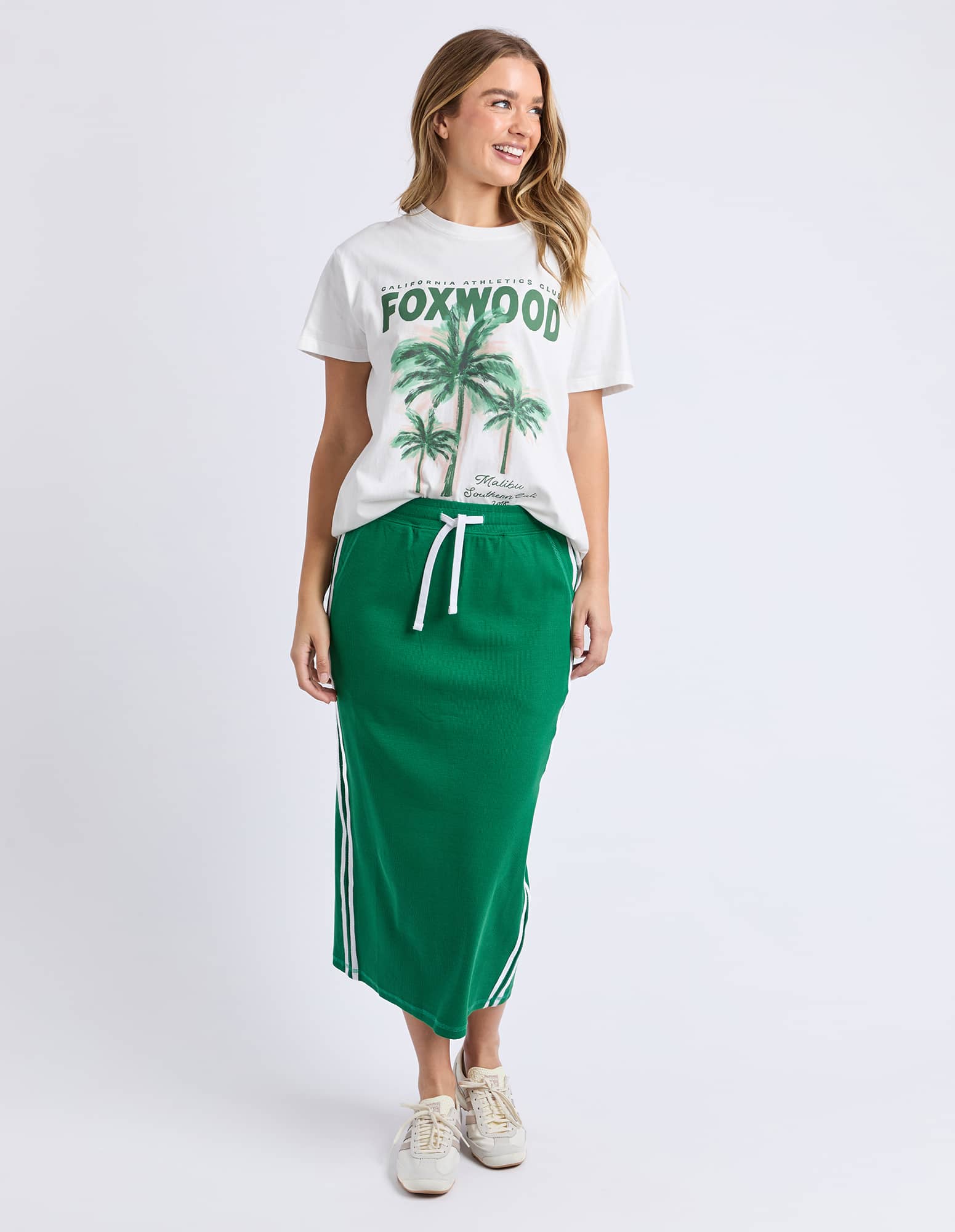 Featuring an elastic wait, with red and white strip down the side, this will be a fabulous skirt for everyday wear.