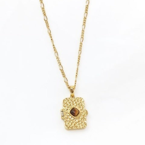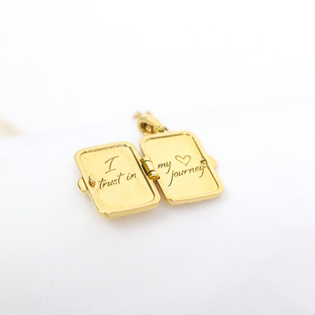 Carry wisdom and courage close to your heart with the 18k gold plated Athena locket or Recycled sterling silver. Featuring a striking Tiger’s Eye stone and soft hammered finish, this piece is a reminder of your inner strength. Open the locket to reveal the inscription, “I trust in my journey,” a mantra to inspire bravery and guide you through life’s challenges. Let the grounding energies of Tiger’s Eye help you step out of your comfort zone and embrace your unique path.