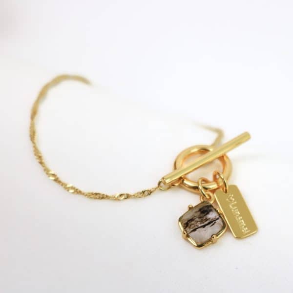 With a delicate twist chain, OT closure and Green Line Jasper Charm the Healing Bracelet is of our most loved designs. Each piece is as unique as you as no two stones are the same. Wear her with any of the other pieces in our aura collection.
