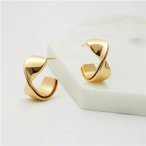 Meet our Marnie Hoops – a fresh twist on classic hoops. With a unique design, these earrings effortlessly blend style and versatility. Lightweight and chic, the Marnie Hoops add a modern touch to your day-to-night ensemble. Redefining sophistication with their distinct twist, these earrings make a bold statement for any occasion, seamlessly marrying classic and contemporary aesthetics. Elevate your look with the subtle charm of Marnie Hoops.