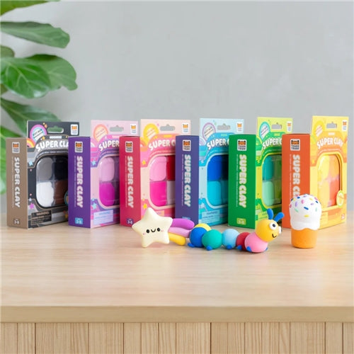 Little hands can bring big ideas to life with this soft, lightweight, air-drying clay. Super Clay – invites kids to roll, knead and sculpt vibrant clay to create two fun characters using step-by-step visual instructions, or to shape whatever their imagination comes up with. No oven needed — just air-dry for play or display.