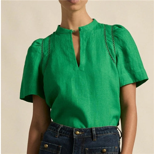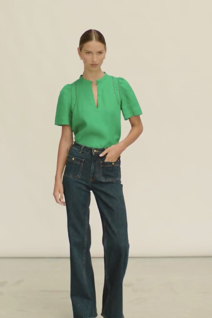 a quietly elevated blouse, the recollect top combines tailoring with soft details.