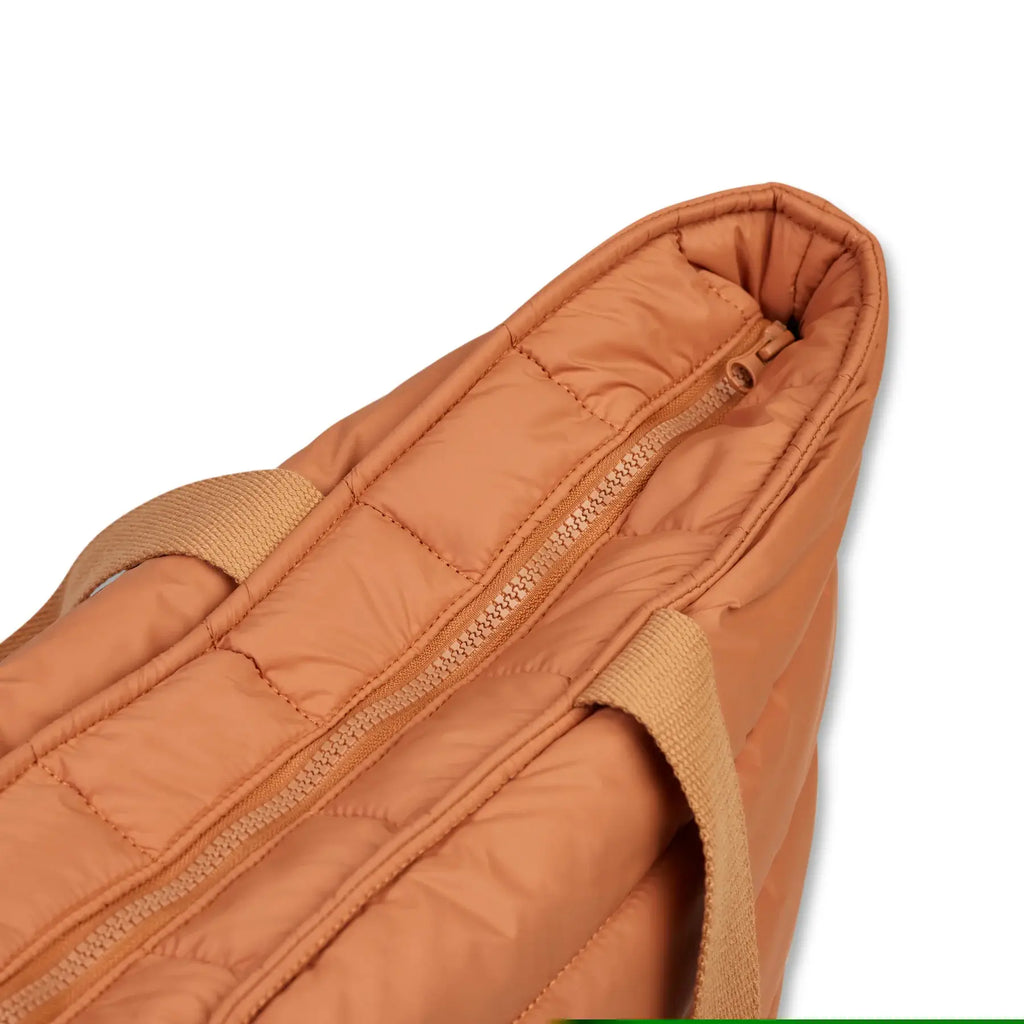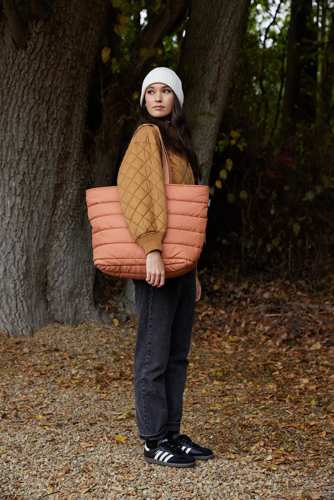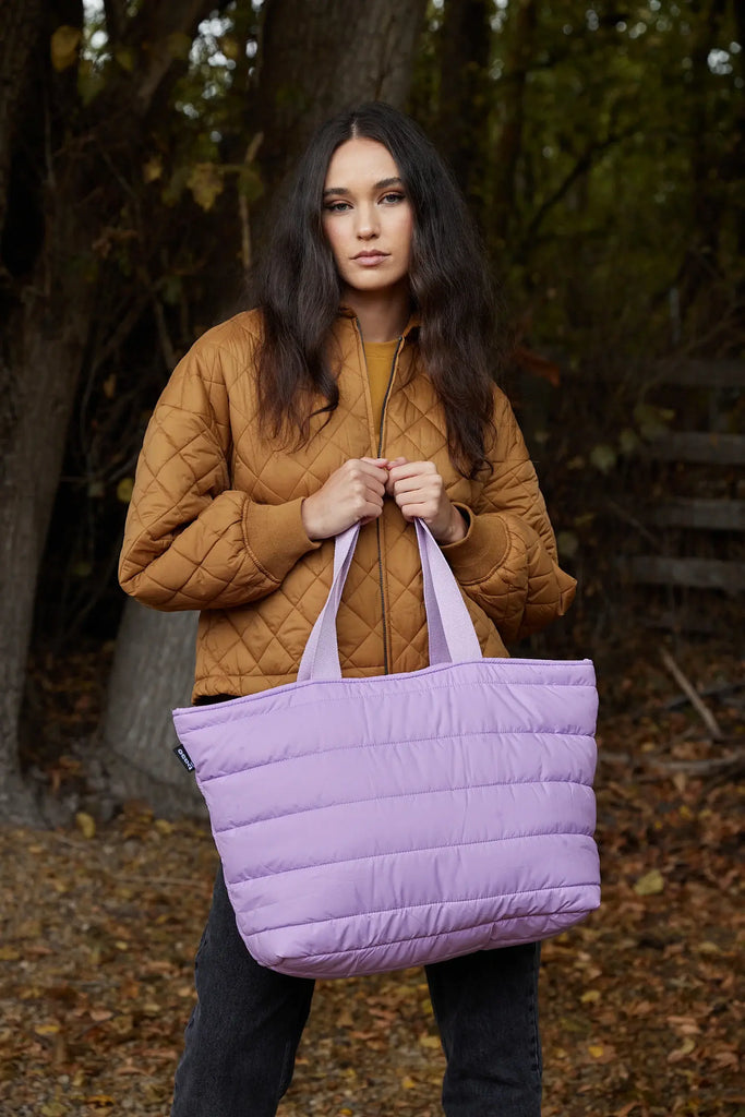 The chunky zip closure keeps everything contained while soft cotton shoulder straps deliver carrying comfort. Ultra-lightweight, cloud-like padding adds fun to the functionality of this everyday tote bag.