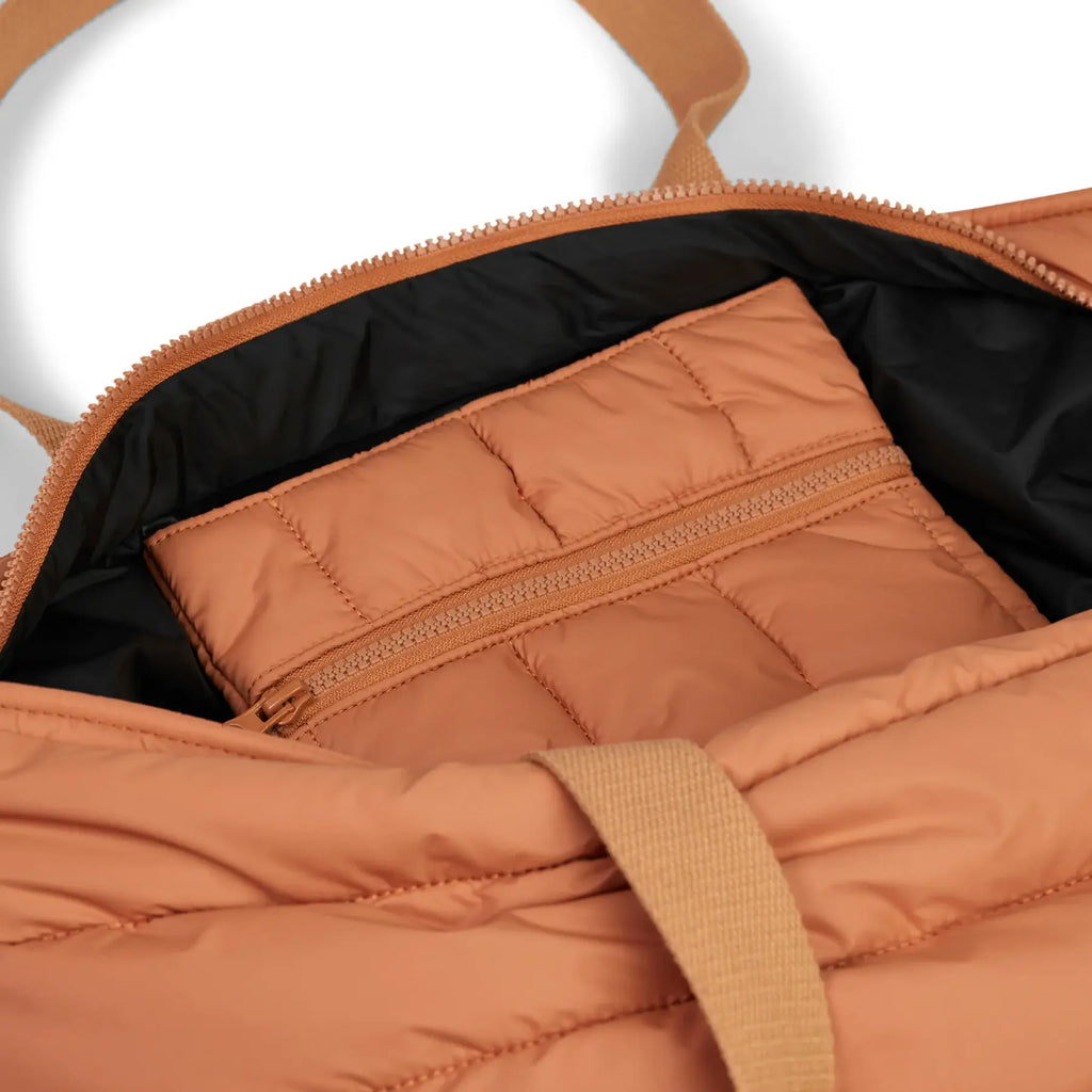 Stuff, zip and go. A soft-as-a-cloud shoulder bag for days on the go or weekends away.