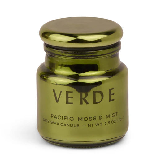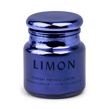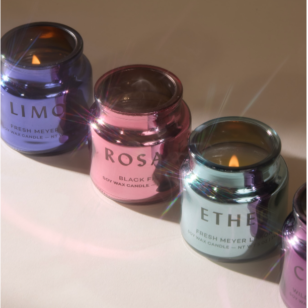 The electroplated glass is available in a range of vibrant hues and has a glass lid. Each 2.5 oz candle is perfectly sized for gifting or for adding to any corner of the home.