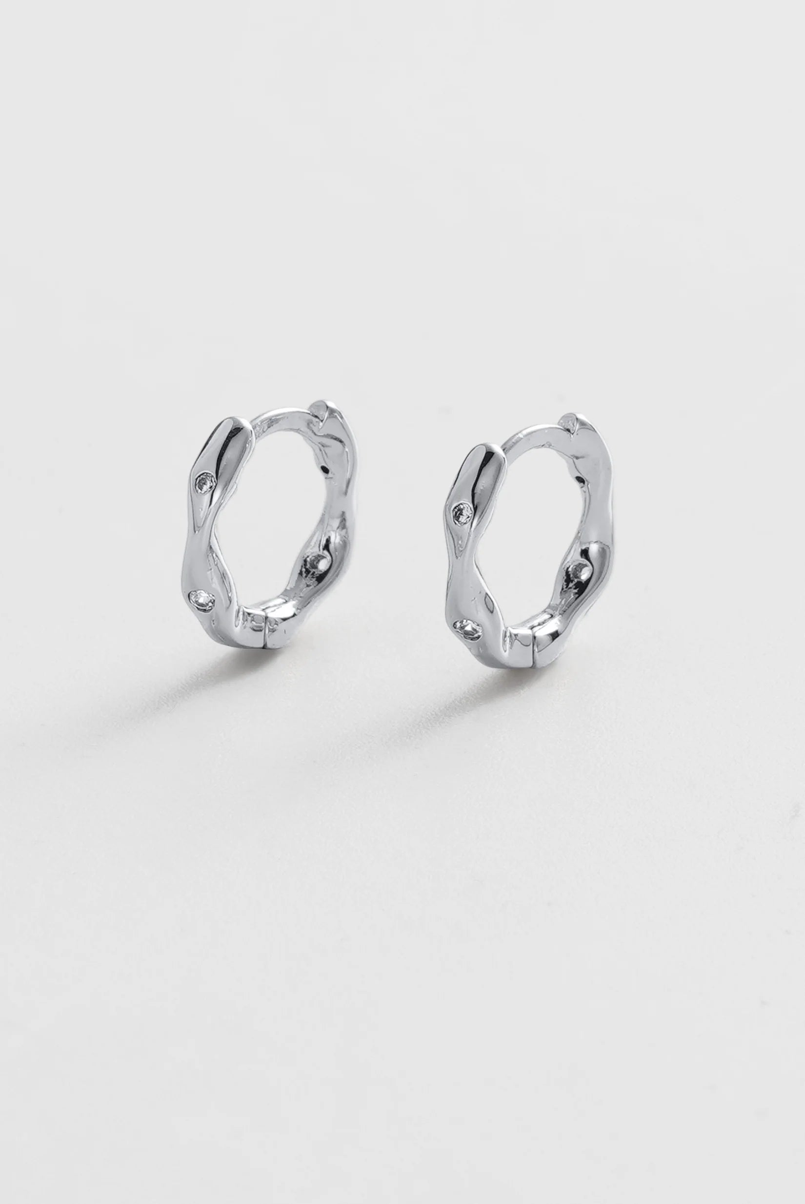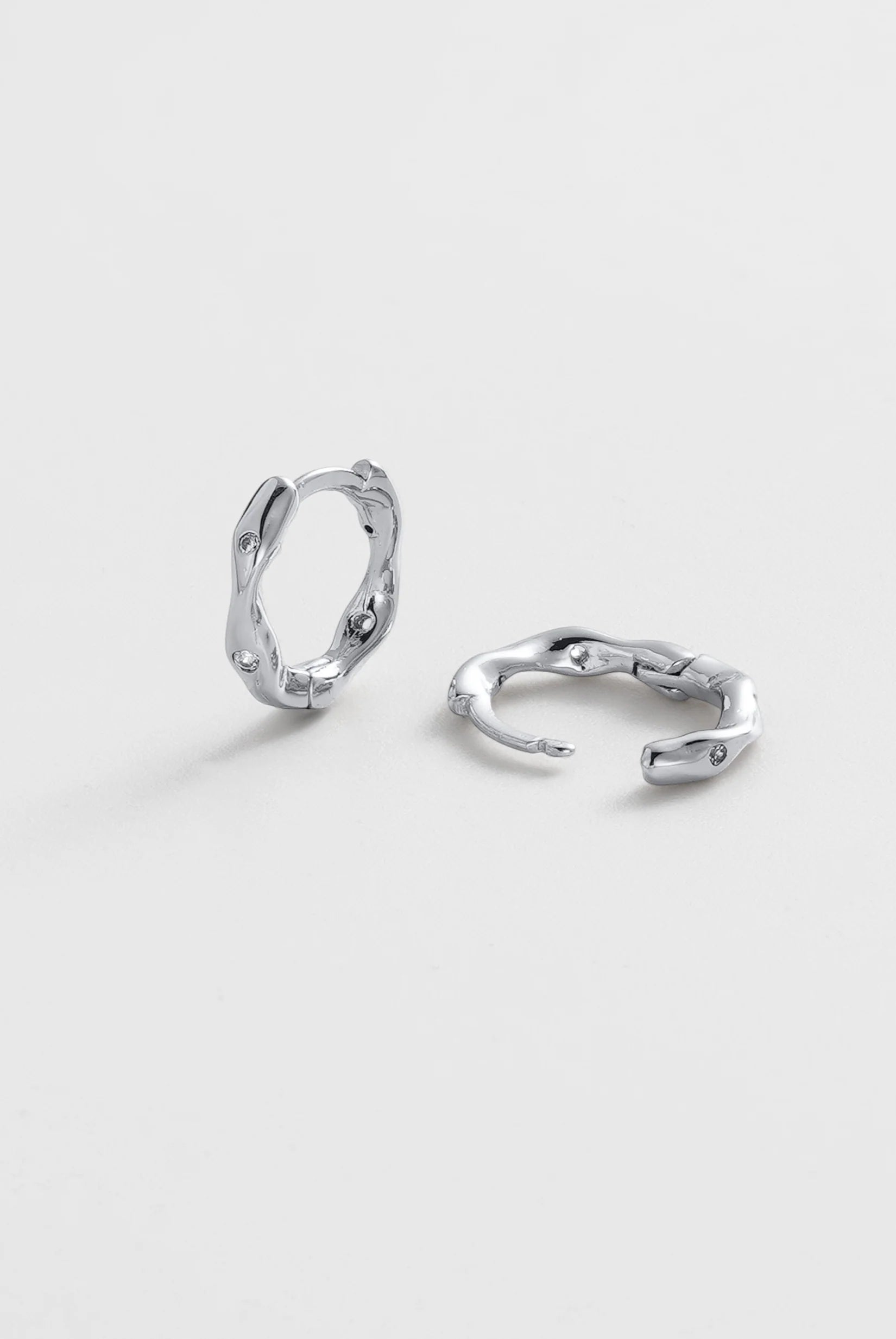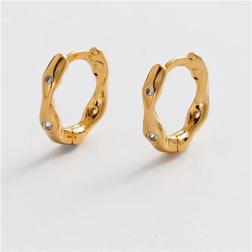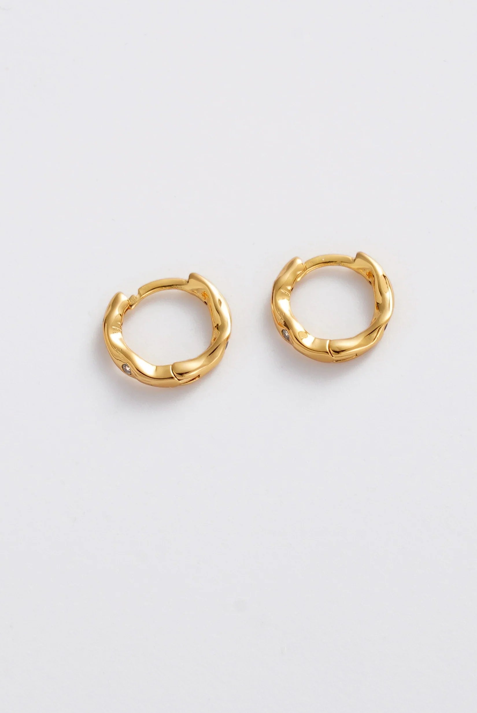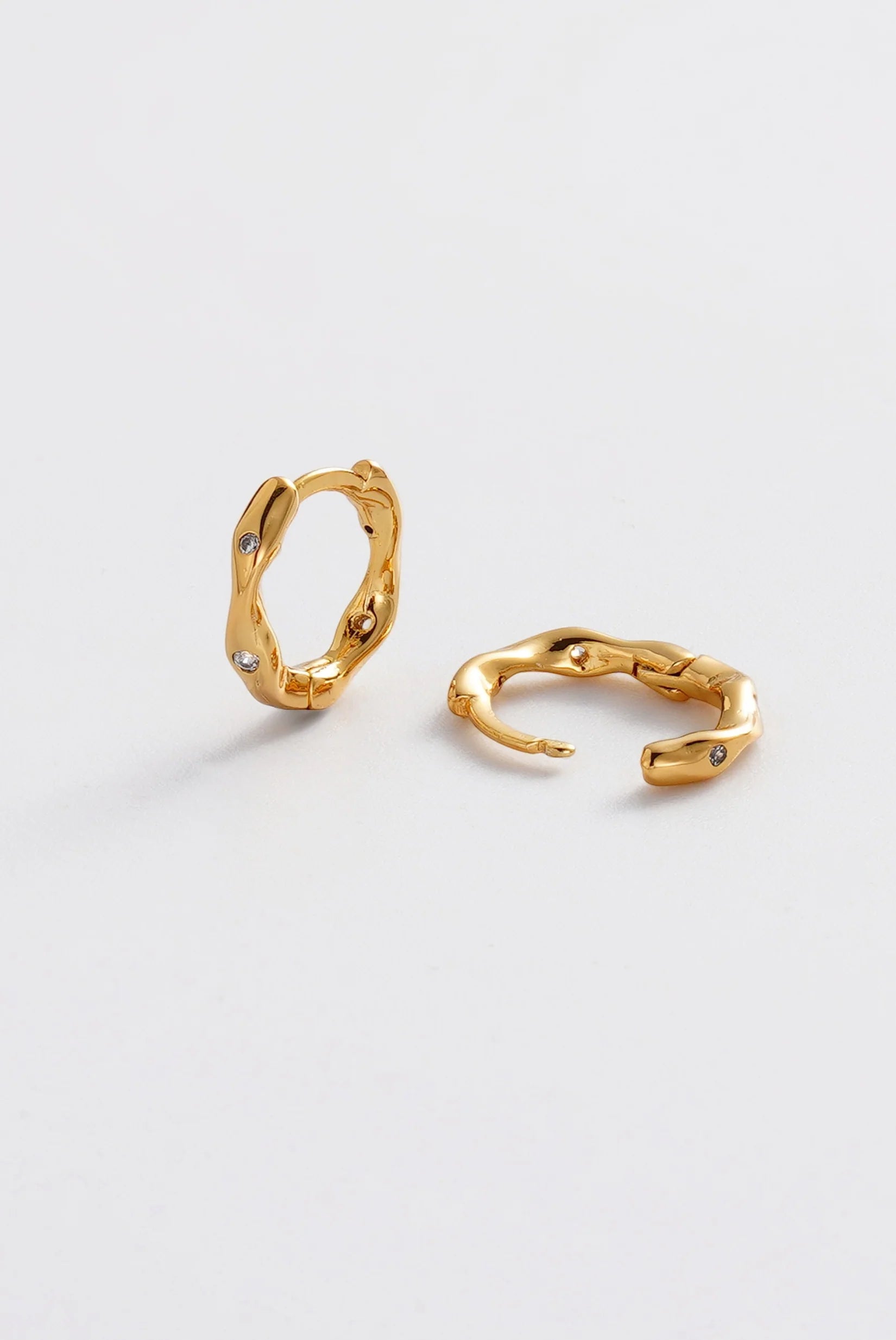 The June Huggie features a softly sculpted organic silhouette with delicate crystal accents set into a polished gold finish. Its fluid shape adds subtle texture and dimension, giving this everyday huggie a modern and distinctive edge.